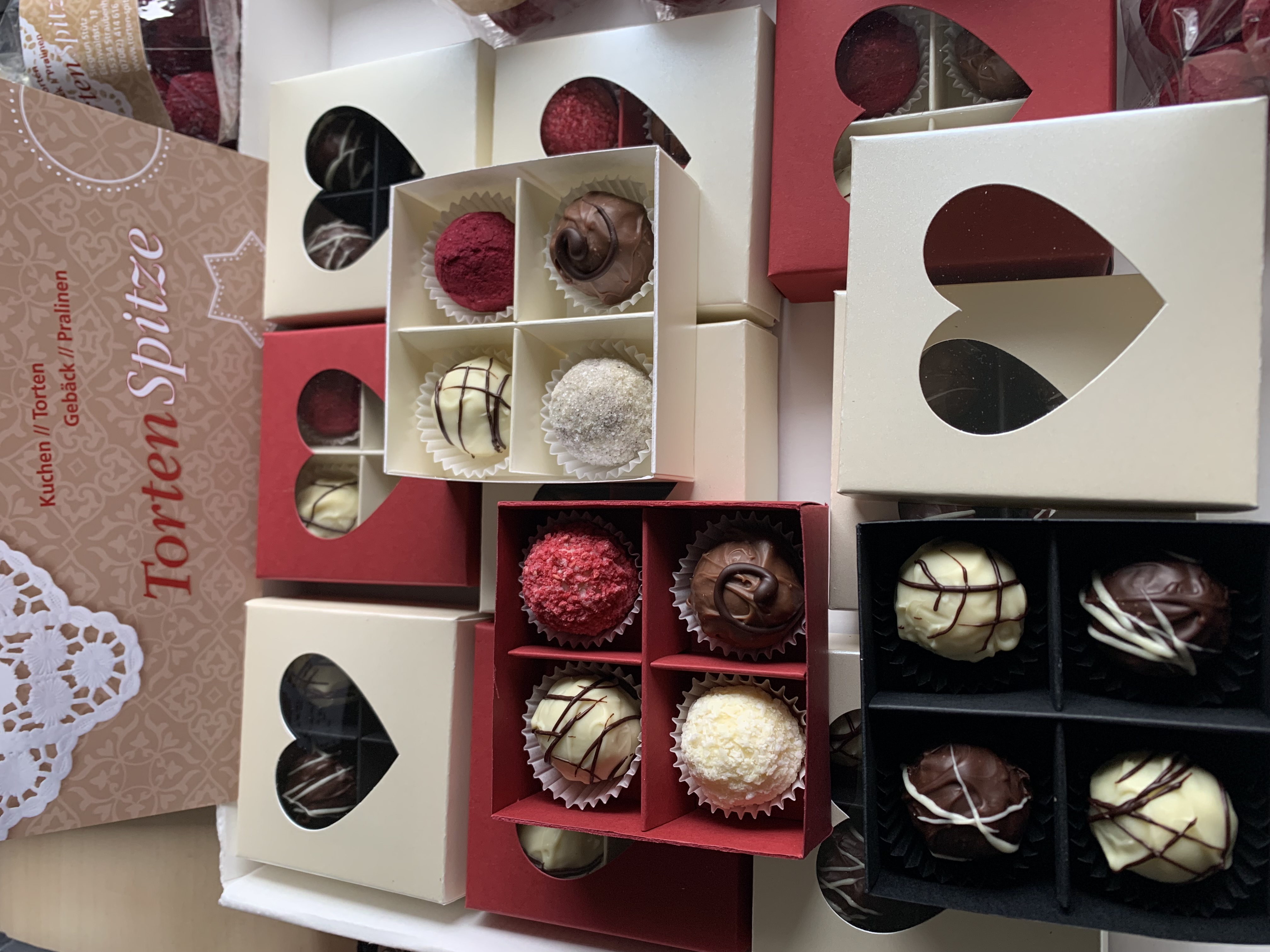 Himbeer-, Cassis-, Amaretto-, Champagner-und Nougattrüffel. und als give away